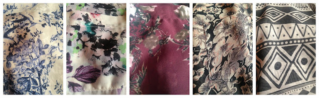 | Lilac Shirt £14 F&F at Tesco // White Floral shirt £25 Bank // Porcelain Print Shirt £39.99 Zara // Burgundy Floral Shirt £23.99 Ark // Beige and Black Floral Shirt £19.99 New Look // Aztec print Shirt £8 Primark |